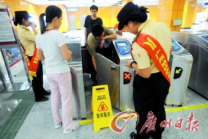 廣州南站:首日有閘口機發生故障,抓緊時間修理。