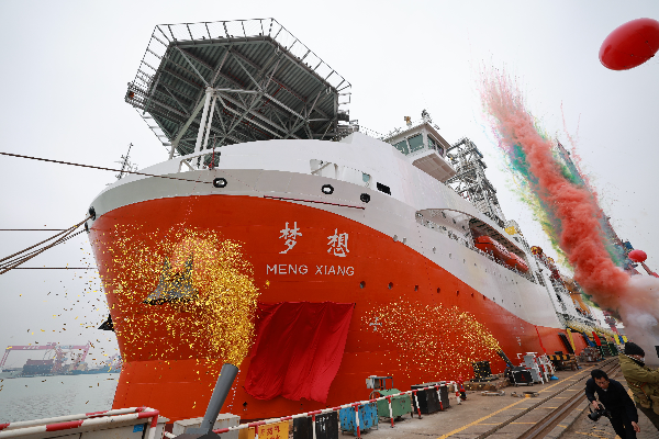 Li Jinfa, director of the China Geological Survey, said at the trial voyage ceremony in Guangzhou, Guangdong province, that the equipment and operational capabilities of the vessel, Meng Xiang, have reached the top international level.