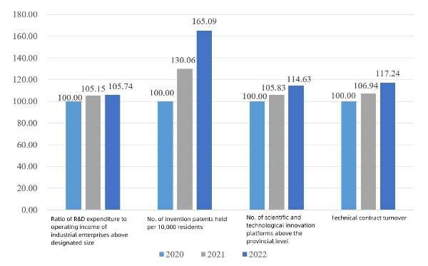 In the field of technological invention, the number of invention patents per 10,000 resident population increased from 38.07 per 10,000 in 2020 to 62.85 per 10,000 in 2022.