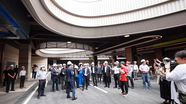 During the visit to Nansha, the delegation made its first stop at the Qingsheng Integrated Development project by Sun Hung Kai Properties. This project is specifically designed as a transit-oriented development (TOD).