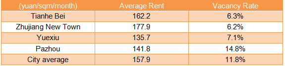 The city's average vacancy rate has exceeded 10 percent for the first time since Q3 in 2017 to 11.8 percent, up 2.3 percent QoQ. Finance, information technology, manufacturing enterprises are the main sources of the rental demand.