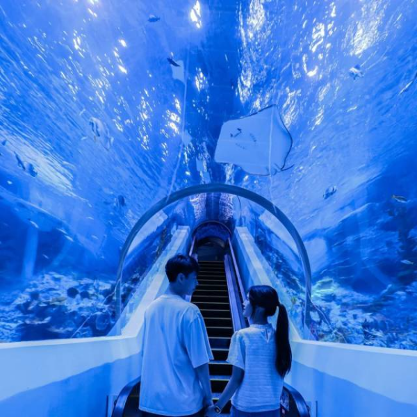 Covering an area of approximately 16,000 square meters with a total construction area of around 20,000 square meters, the ocean world boasts over 300 species of marine life and nearly 10,000 marine fish, including the giant Brazilian bony-tongue fishes, one of the largest freshwater fishes in the world, as well as the original largemouth fishes and ratmouth barbel from the Pearl River, myxocyprinus asiaticus, sand tiger sharks, bottlenose dolphins, spotted seals, green sea turtles, and beluga whales.