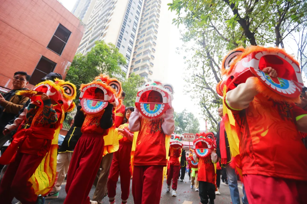 Meihuacun Subdistrict: Beidi Temple Folk Parade in Yangji Village, musical performances, and dragon/lion dances.