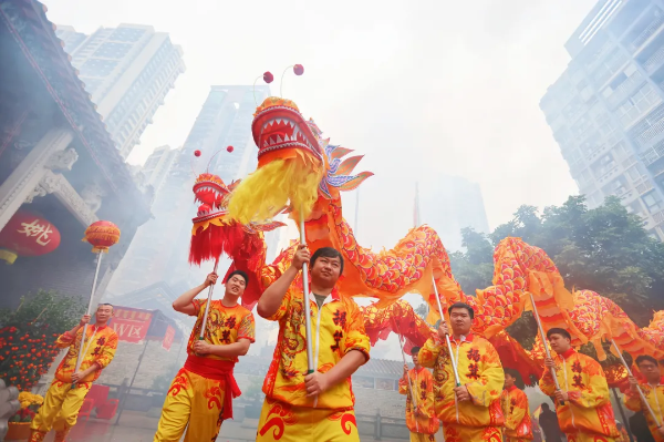 Dragon dance at 2025 Yuexiu Temple Fair