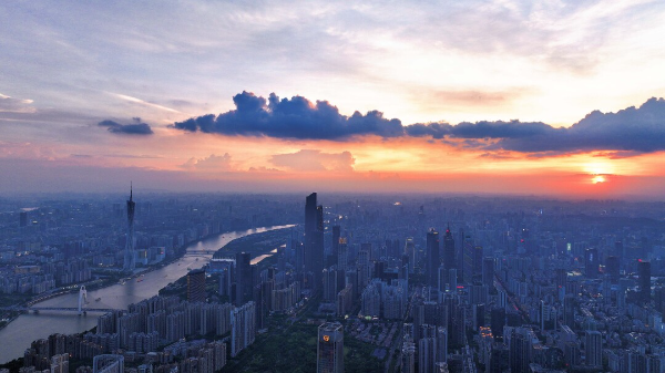 In recent days, the breathtaking pictures of the sunset sky of Guangzhou have been dominating social media feeds, presenting a mesmerizing visual spectacle with its vibrant hues and captivating clouds. On July 23rd, the sunset continued to dazzle, with crowds of people flocking to the banks of the Pearl River to witness the descending sun, while passersby on Liede Bridge paused to capture the "orangeade-like" beauty on their cameras.