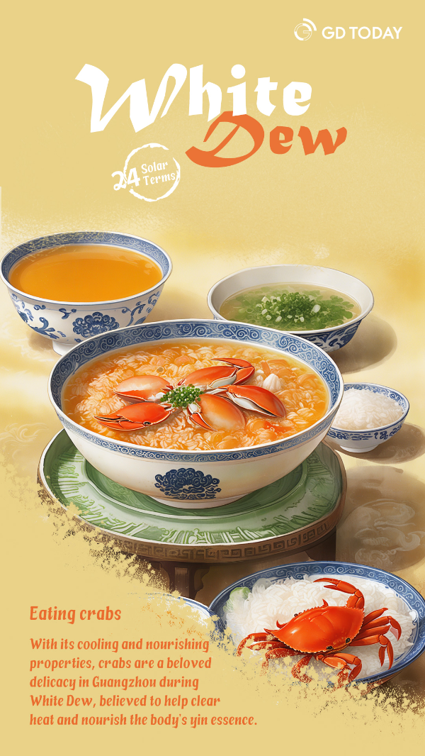 Eating crabs: With its cooling and nourishing properties, crabs are a beloved delicacy in Guangzhou during White Dew, believed to help clear heat and nourish the body's yin essence.