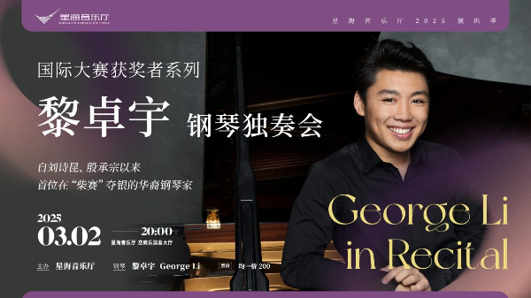George Li has been praised by The Washington Post for his "stunning technique, thunderous power, and profound musicality". Piano educator Gary Graffman also said that he "has an unlimited future". Li now returns to the Xinghai Concert Hall with a recital featuring Beethoven's "Tempest" and "Moonlight" Sonatas, Debussy's Images, and Mussorgsky's Pictures at an Exhibition.