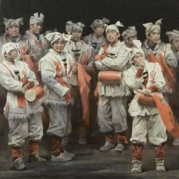 Lively watercolor artwork depicts Northern Shaanxi's waist drum troupe
