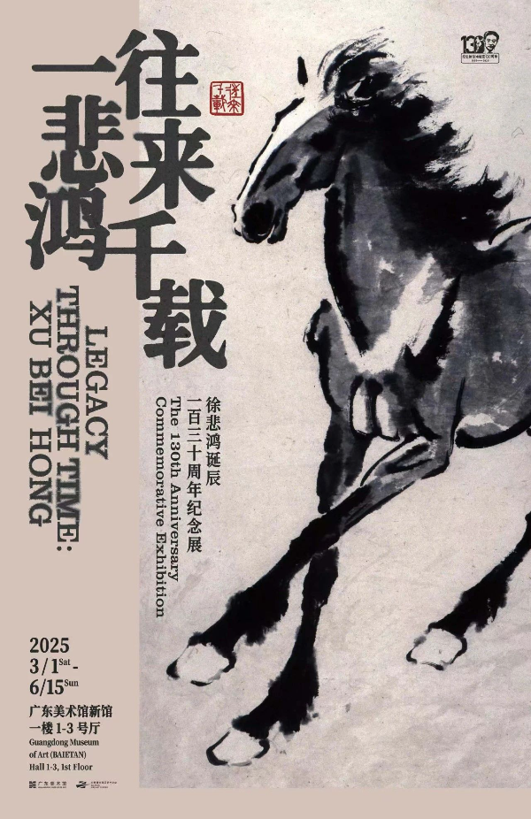The "Legacy Throughout Time: Xu Beihong 130th Anniversary Commemorative Exhibition"centers on Xu Beihong's artistic life, featuring 73 representative works and a wealth of documentary materials. It is divided into three thematic sections: Enlightenment, Art Education, and Self-Improvement.