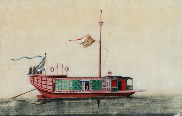 Pith painting of watercolor vessel in late Qing Dynasty, Guangzhou thirteen Hongs Museum’s collection