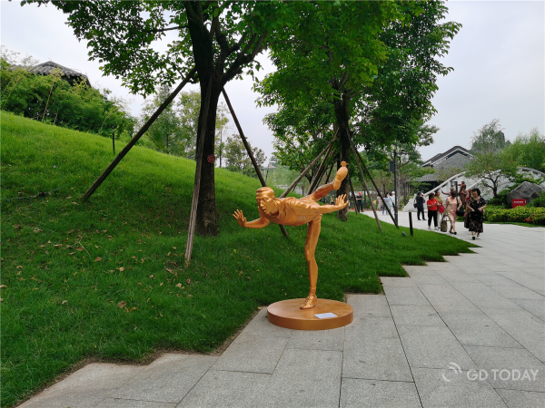 A sculpture features shuttlecock kicking, a traditional folk game which is popular among Guangzhou locals.