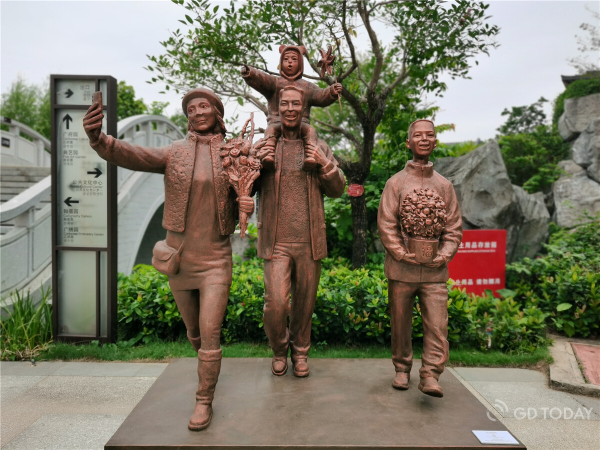 A group of sculptures features visiting a flower fair, one of the most important traditions for the Spring Festival in Guangzhou.