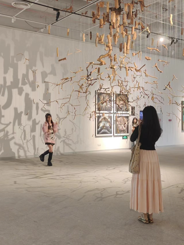In the exhibition, artworks by 13 renowned domestic artists, such as Fang Lijun, Wang Shaoqiang, and Lu Yushun, are presented to the audience, while the display design at the exhibition hall combines AI technology with artistic works to offer a visual feast to the public. Furthermore, visitors can try to create their unique AI artworks on-site.