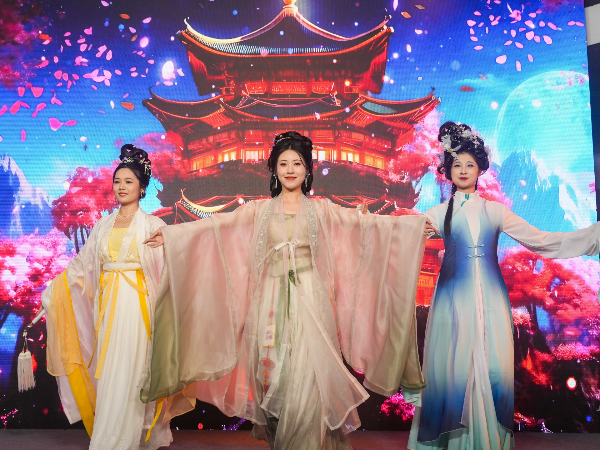 People dressed in Hanfu, a traditional garment of the Han ethnic group, perform at the opening ceremony of the 2024 Orchid Cultural and Tourism Week on April 13, 2024.