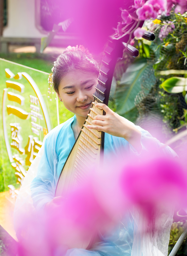 A young lady dressed in Hanfu, a traditional garment of the Han ethnic group, performs at the opening ceremony of the 2024 Orchid Cultural and Tourism Week on April 13, 2024.