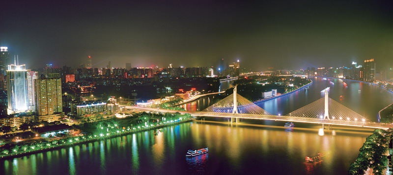 The Pearl River is composed of three river systems including the East River, the West River, and the North Riverr. The three river systems converge in Guangzhou, resulting in fascinating vistas. At night, under sparkling lights, the boat carrying passengers depart from the Xidi Wharf near the People's Bridge, sailing eastward, passing the Liberation Bridge, Haizhu Bridge, Haiyin Bridge, Guangzhou Bridge, and Hedong Bridge, before returning to the wharf. This section of the river offer visitors vistas such as "the Red Heart of the Pearl River", "the Spring Dawning on the East Lake", "Wall of Sails at Huangpu", and "Night Moon over the Goose Pond", which are among Guangzhou's top eight sights; it also provides views of the Southern Building, Aiqun Building, Guangzhou Hotel, Huaxia Hotek, Jiangwan Hotel, Ersha Haizhu Plaza Garden, the White Swan Hotel, and Shamian Foreign-style Building Complex. The cruise takes approximately two hours.