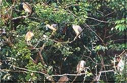 There are two crane forests in Maogang Village of Dasha Town, Huangpu District. One is the Yuanbei crane forest, beside the Maogang village committee. The forest covers an area of 30 mu and has 2000 or more cranes. The other one is the Kengtou Crane Forest, on the hillock behind Cangxia village of Kengtou, Maogang. It occupies 40 or so mu and has 1000 or more cranes.