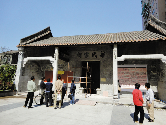 Situated in the northeast of Fengyuang Road, Liang Clan Ancestral Hall was recorded to be first built in the Ming Dynasty (1368 – 1644) according to the stone inscription, and now becomes one of the ancestral halls reserved in a complete way in Pantang. With a width of 3m, Liang Clan Ancestral Hall appears regular and symmetrical, and has a broad courtyard. Compared to other ancestral halls, it presents an extraordinary style.