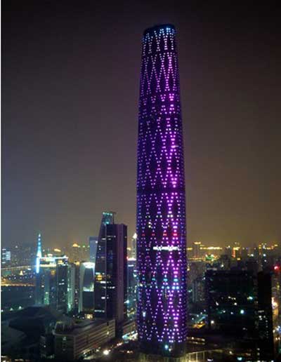 The design of the West Tower is selected from the 12 programs of the international invitation competition held by Guangzhou Urban Planning Bureau in 2004. This building adopts an architectural system which is composed of the huge grid outer tube of steel concrete with the internal wall cylinder of reinforced concrete. It is unique among world's high-rise buildings, and also the first mainland high-rise building invested in by a Chinese company.