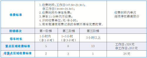 具體來看,兩類區(qū)域各級階梯收費標準:重點區(qū)域的全天準停泊位3個階梯收費標準分別為每半小時5元、8元、13元,不設置連續(xù)停放最高收費時長;非重點區(qū)域的全天準停泊位3個階梯收費標準分別為每半小時2元、3元、5元,單個收費時段連續(xù)停車最高收費時長為4小時,即最高限價26元。