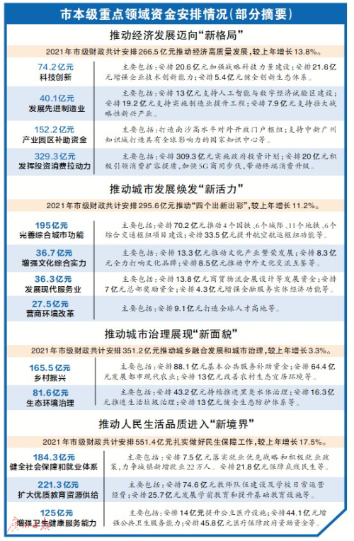2021年,市級財(cái)政共計(jì)安排551.4億元扎實(shí)做好普惠性、基礎(chǔ)性和兜底性民生保障工作,較上年增長17.5%,竭力提升市民生活品質(zhì)。例如,安排184.3億元支持健全社會保障和就業(yè)體系,力爭城鎮(zhèn)新增就業(yè)22萬人。