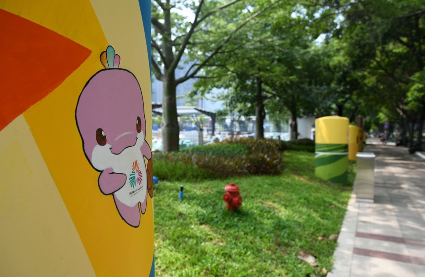 十五運(yùn)會(huì)和殘?zhí)貖W會(huì)廣州賽區(qū)執(zhí)委會(huì)邀請(qǐng)廣州美術(shù)學(xué)院的學(xué)生,為天河體育中心外圍有250根立柱創(chuàng)作彩繪圖案,融入體育運(yùn)動(dòng)、廣州特色、嶺南文化等元素,為城市公共空間注入活力與人文溫度,讓游客和市民在“轉(zhuǎn)角遇到美”。充分考慮到廣州濕熱多雨,相較平面更易出現(xiàn)裂縫的圓柱體水泥立柱,以及呼應(yīng)“多彩全運(yùn)”等因素,立邦為立柱提供從底到面的全體系產(chǎn)品。