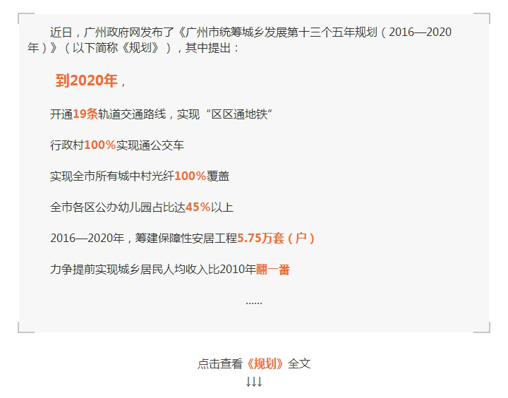 交通、教育、住房、養老...與你有關!廣州統籌城鄉發展十三五規劃出爐