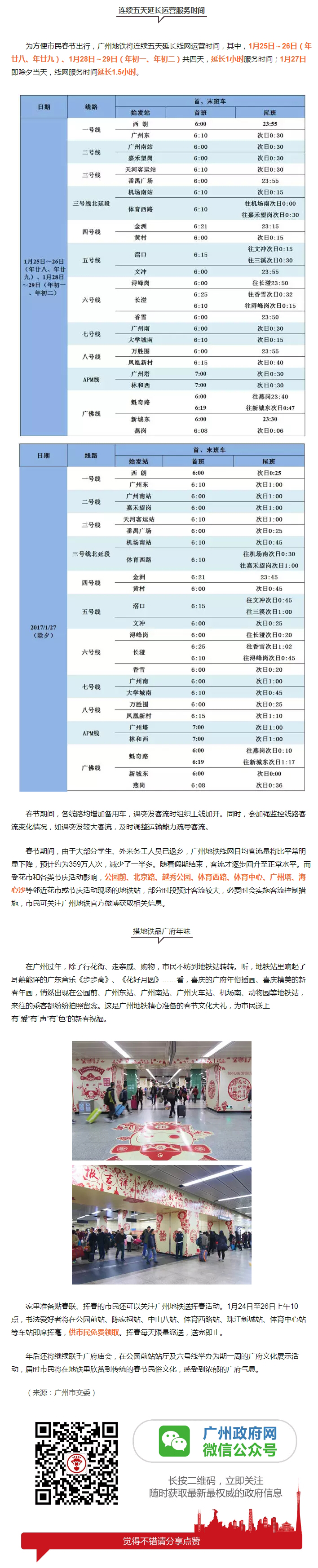 春節期間,廣州地鐵連續五天延長運營服務時間|這個時間表要收好~
