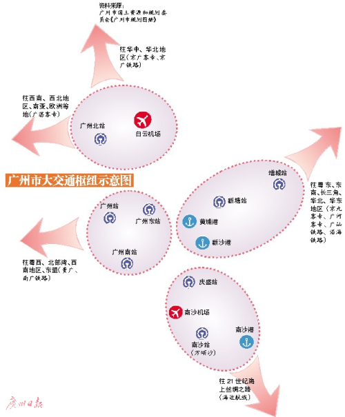 廣州市繼續把重大基礎設施投資建設作為重要抓手,完善綜合交通運輸大通道,建設世界級的空港、海港和鐵路網絡。