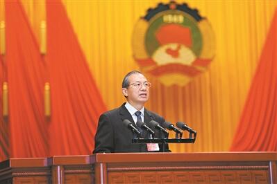 李貽偉代表政協第十四屆廣州市委員會常務委員會,向大會報告工作。