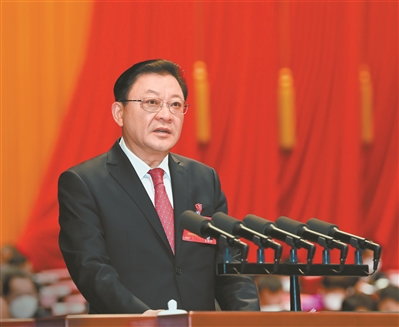 黃坤明林克慶等在主席臺就座 王偉中作政府工作報告 黃楚平主持大會 王榮等列席