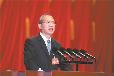 李貽偉代表政協(xié)第十四屆廣州市委員會(huì)常務(wù)委員會(huì),向大會(huì)報(bào)告工作。