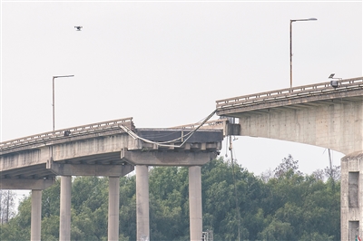 據介紹,經初步檢測和組織設計、施工等業內專家會商研判,目前除19號墩靠主橋側掛梁塌落外,被撞受損的19號橋墩傾斜嚴重,存在進一步失穩風險。為避免發生次生災害,需進一步拆除19號-20號墩跨梁,以消除安全隱患。