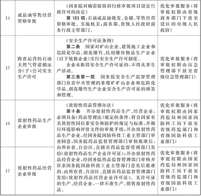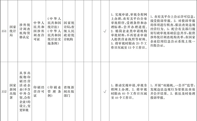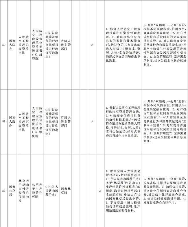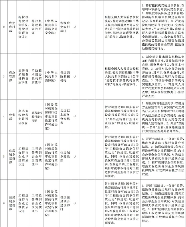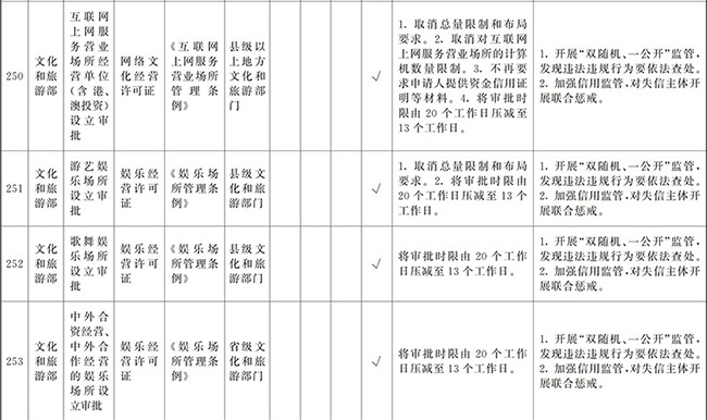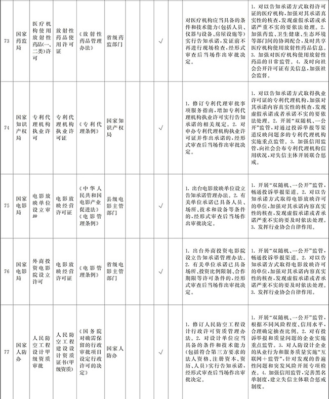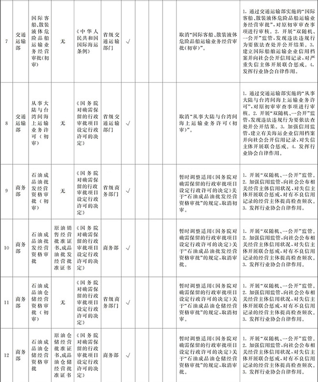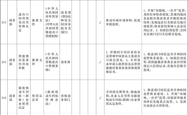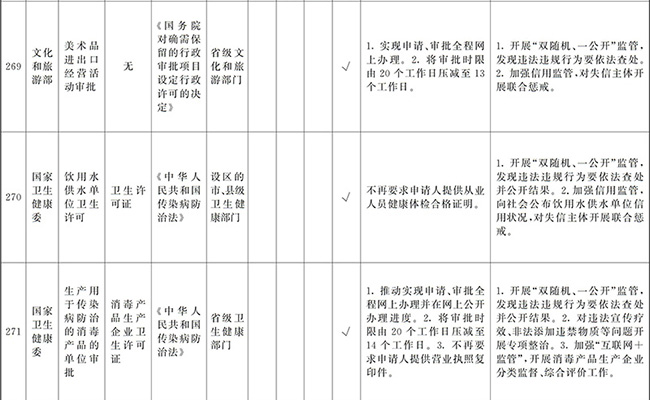 (一)直接取消審批。對設定必要性已不存在、市場機制能夠有效調節、行業組織或中介機構能夠有效實現行業自律管理、通過事中事后監管能夠有效規范的涉企經營許可事項,直接取消審批。