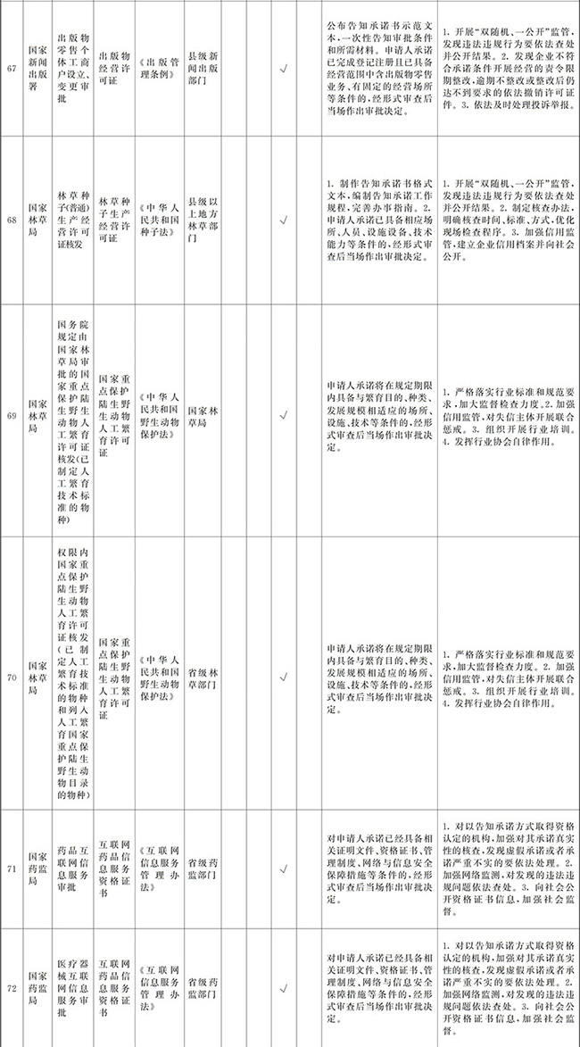 (三)實行告知承諾。對確需保留的涉企經營許可事項,企業就符合經營許可條件作出承諾,有關主管部門通過事中事后監管能夠糾正不符合經營許可條件行為、有效防范風險的,實行告知承諾。