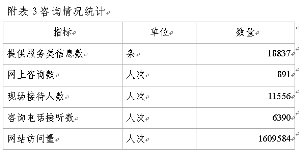 2012年廣州市科技和信息化網網站訪問量1609584人次,同比增長45.1%(2011年網站訪問數為1108927人次),點擊量排前五位的欄目分別是:通知公告、辦事大廳、組織機構、在線咨詢、工作動態。2012年我局解答公眾咨詢18837人次,其中通過局網站、微博解答咨詢891人次,電話解答咨詢6390人次,當面解答咨詢11556人次。