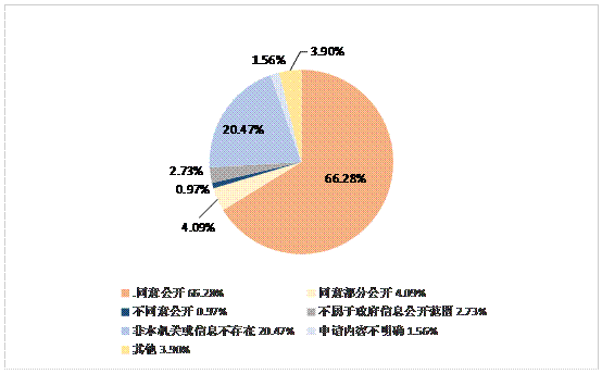 “不予公開”5件,占總數的0.97%。主要是因為涉及政府內部研究報批過程或個人隱私等,根據《中華人民共和國政府信息公開條例》第二十一條規定、《國務院辦公廳關于做好政府信息依申請公開工作的意見》,不予公開。
