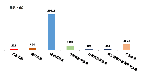 本區2017年全年主動公開政府信息14793條,其中:1.組織機構類信息178條;2.部門文件類(包括規章、規范性文件等)信息494條;3.動態類信息11018條;4.行政職權類信息(包括行政審批、執法等) 1195條;5.財政預決算信息102條;6.建議提案辦理結果類信息153條;7.其他信息1653條。