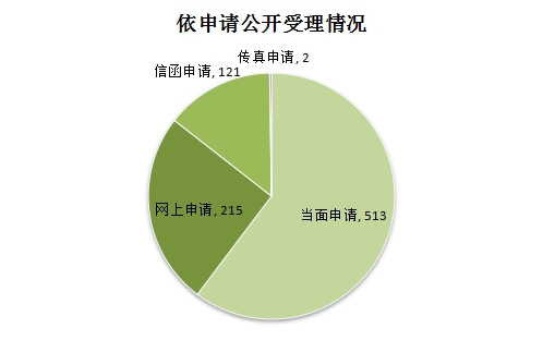 我區人民政府2018年共受理信息公開申請851件,其中當面申請513宗,占57.7 %;網上申請215宗,占27.8%;信函申請121宗,占14.2%,傳真申請2宗,占0.2%,其他方式申請0宗。