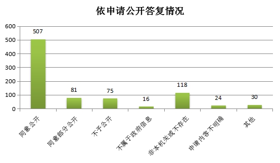 在已經答復的851件申請中,“同意公開”的507件,占總數的59.6%。“同意部分公開”的81件,占總數的9.5%。“不予公開”的75件,占總數的8.8%,主要是申請的內容涉及國家秘密、商業秘密、個人隱私以及單位內部信息和過程性信息;“不屬于政府信息公開范圍”的16件,占總數的1.9%;“非本機關政府信息或信息不存”的118件,占總數的13.9%,主要是因為要求獲取的信息不屬于我區政府及區屬各單位所掌握的信息,均已告知申請人與其他單位聯系;“申請內容不明確”的24件,占總數的2.8%,主要是要求獲取的政府信息內容描述不清楚;“其他情況”的30件,占總數的3.5%,主要是申請人撤銷申請等。