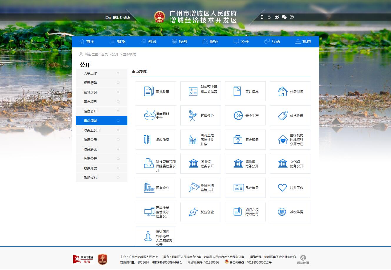 涉及群眾切身利益的事項始終是我區政務公開的重點,區政府門戶網站作為政府信息公開的第一平臺,開設了重點項目專欄和重點領域專欄,保障公眾的知情權、參與權和監督權。圍繞區委區政府的工作部署,重點項目專欄梳理了涉及公眾切身利益的重大項目的審批情況及進展情況,如《區2017年社會投資重點建設項目推進情況》、《增城區2017年第三季度固定資產投資項目立項審批情況通報》等;重點領域信息公開專欄梳理發布了財政預算決算和三公經費公開、醫療服務、食品安全、環境保護、價格收費、住房保障等25個與民生密切相關的領域,截至2017年12月,共發布信息2117條。