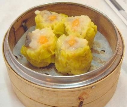 干蒸燒賣是廣州人喜歡的茶樓傳統早點之一。它用薄面包裹半露的肉餡料蒸熟,色鮮味美,爽口不膩。各茶樓、酒家均有出售。干蒸燒賣有豬肉干蒸燒賣和牛肉燒賣兩種。其中牛肉燒賣的歷史有七八十年之久。
