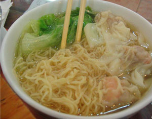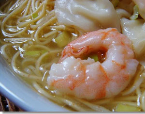 鮮蝦云吞面是廣州人最愛吃的地方風味的小食之一。云吞是從外省的餛飩演化而來,但外省的餛飩皮多肉少,廣東的云吞則皮薄肉多,做工精細,餡料豐富,內有豬肉、鮮蛋、蝦仁等。云吞面的湯十分講究,以前沒有味精,就用豬骨、蝦子、大地魚煲制。面用的是全蛋面,一斤面粉下半斤雞蛋,吃起來鮮味香濃,爽滑“彈牙”。