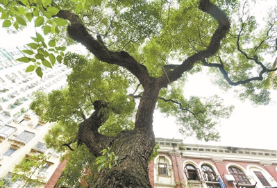 該古樟樹位于廣東省廣州市海珠區南華西街道海天社區居委會波樓3號。據介紹,該古樹屹立在珠江南岸邊,陪伴著它的是旁邊一座懸掛臺風信號風球的瞭望臺。瞭望臺一次次為市民提供天氣預警,該古樹也見證著廣州的歲月變遷。