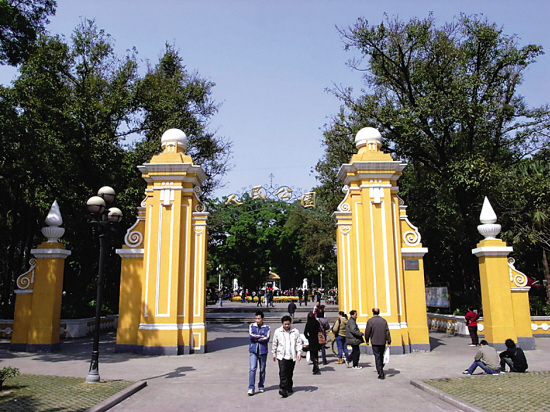 位于廣州市中心的人民公園,面積4.46萬平方米,是廣州最早建立的綜合性公園。園址從隋朝起就是歷朝歷代的衙門官邸:元代是廣東道肅政廉訪使署;明朝為都指揮司署,并曾為南明紹武政權王宮;清代先后為平南王府和廣東巡撫署;民國七年(1918年),孫中山倡議將其辟為綜合性公園,命名為“市立第一公園”。公園采取意大利式的庭園布局,呈方形對稱形式。