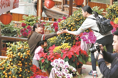 而今年,花市又有了諸多新玩法,給了人們更多的選擇、更好的體驗。AI花市,掃碼就能訂購大師作品,讓年花瞬間高大上;水上花市,讓人們在逛花市之時還能暢發懷古幽思,遙憶西關百年風情;廣州日報的《千年花城19看》大手筆策劃,讓人們與各路大咖一起看歷史、看文化、看經濟,看花看出門道,看出深度;莫名火起來的佩奇,也成為花市的一大熱門,說不定你就能收到佩奇“代言”的新春紅包。