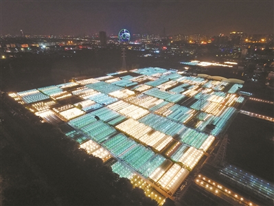 永慶坊內的AI花市,亮燈后顯得非常漂亮。