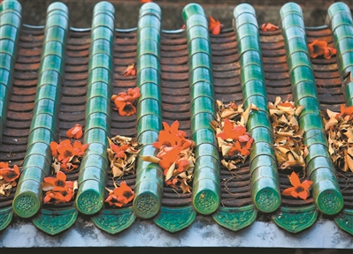 2月14日,鎮海樓屋頂上,還有不少被風吹落的木棉花,頗有詩意。