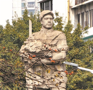2月14日,海珠廣場的英雄雕像前,木棉綻放。