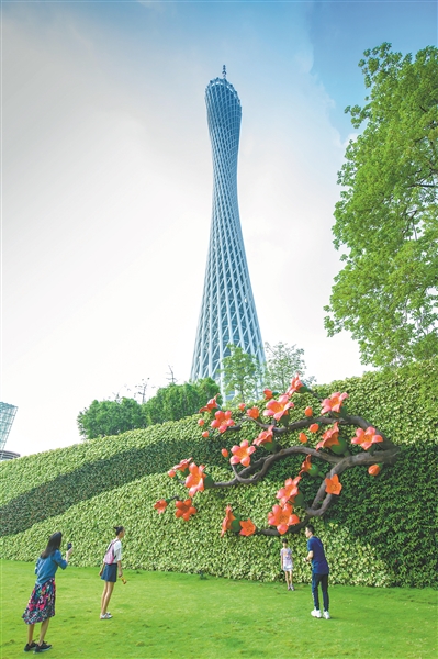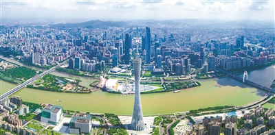 陽光映照下,廣州塔和珠江新城彼此呼應,成為新中軸線的焦點所在